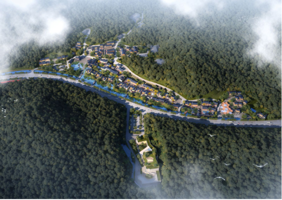 項目占地面積330畝,建有溪邊合院、步行街、半山民樂、美食街、礦坑酒店、集市、民宿、藝術村等。